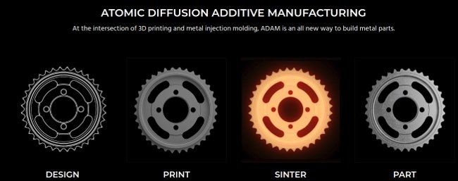 Atomic Diffusion Additive Manufacturing. At the intersection of 3D printing and metal injection molding, ADAM is an all new way to build metal parts: